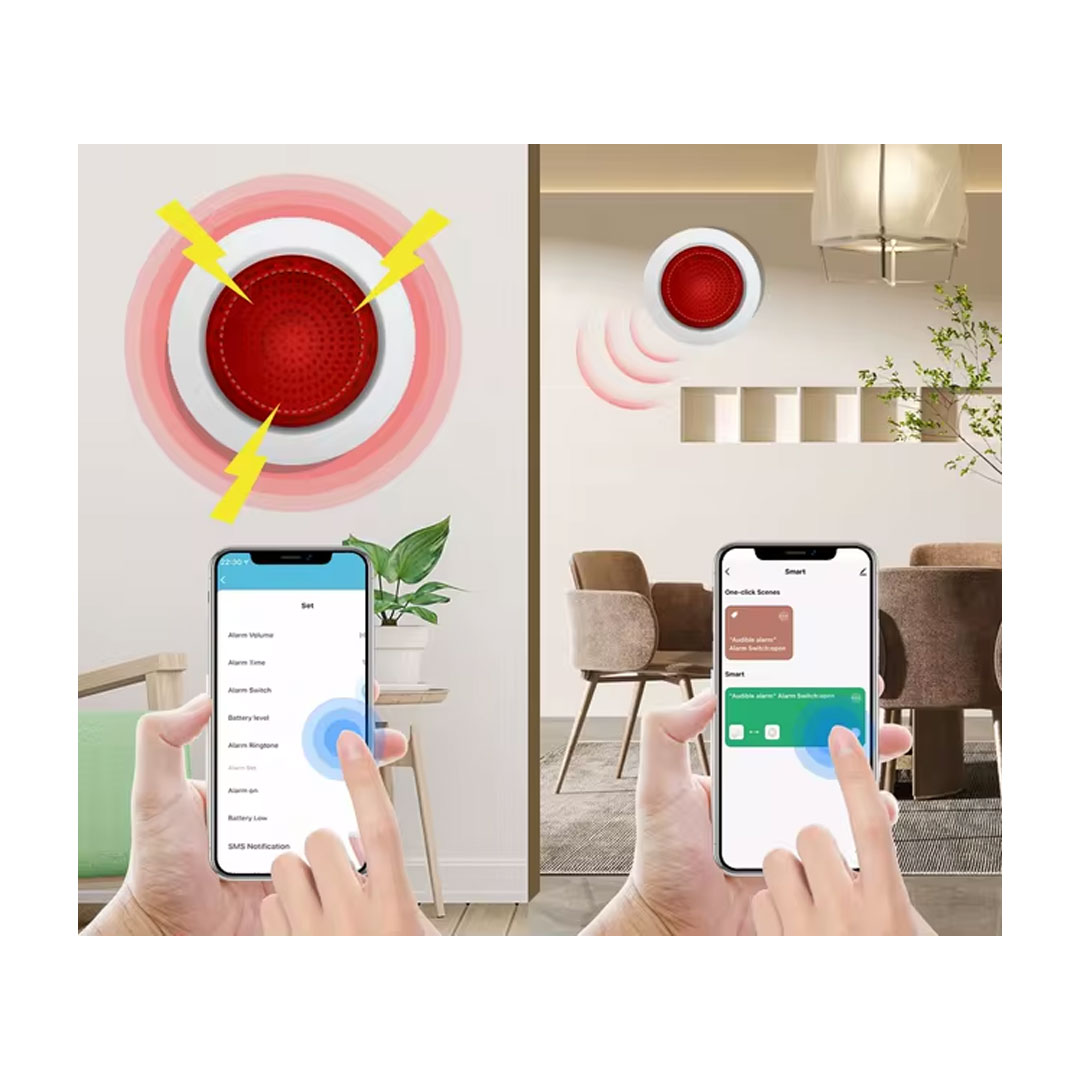 Emite un potente sonido disuasorio al activarse un sensor, con notificación remota para que te enteres aunque no estés en casa.